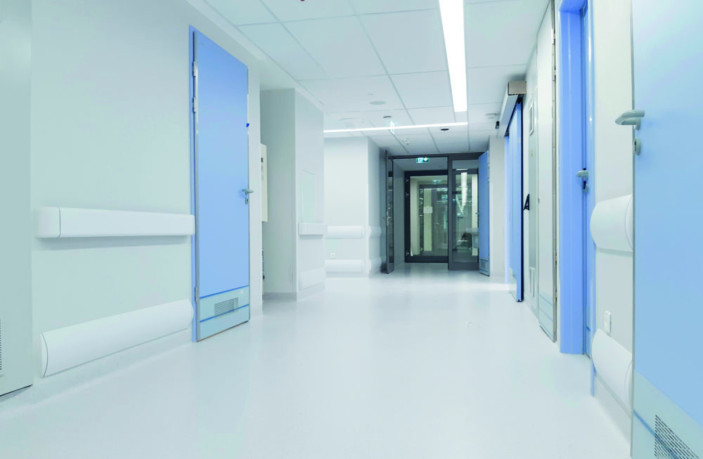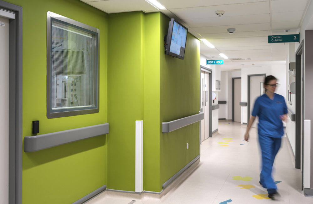O sistema de fixação robusto e eficiente da CS torna a instalação do Acrovyn Hão/Crash Rails um processo simples e limpo.