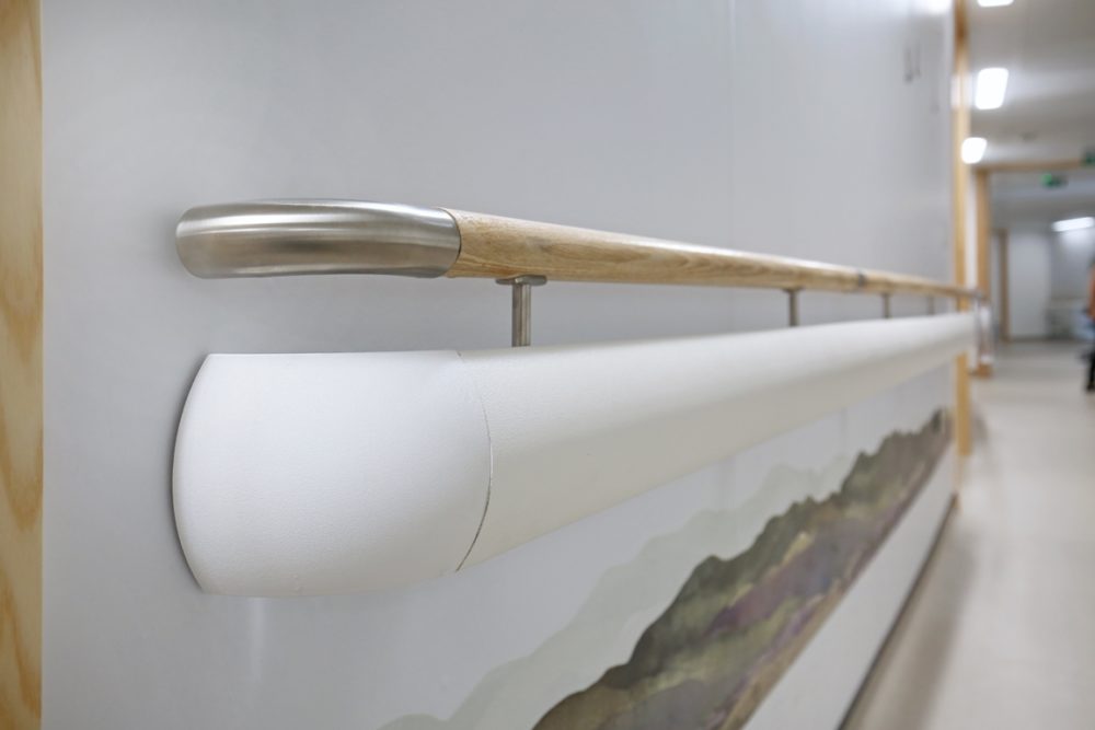 - Corrimãos/barras anti-choque de aspeto elegante, em conformidade com as normas para áreas de circulação movimentadas