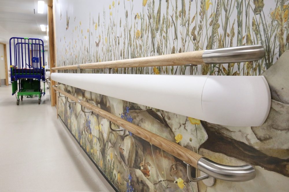 Com 220 mm de altura, o HRBW-50N combina um corrimão de madeira maciça e uma barra anti-choque sem PVC num suporte de aço inox para proporcionar apoio à mobilidade e proteção contra impactos.